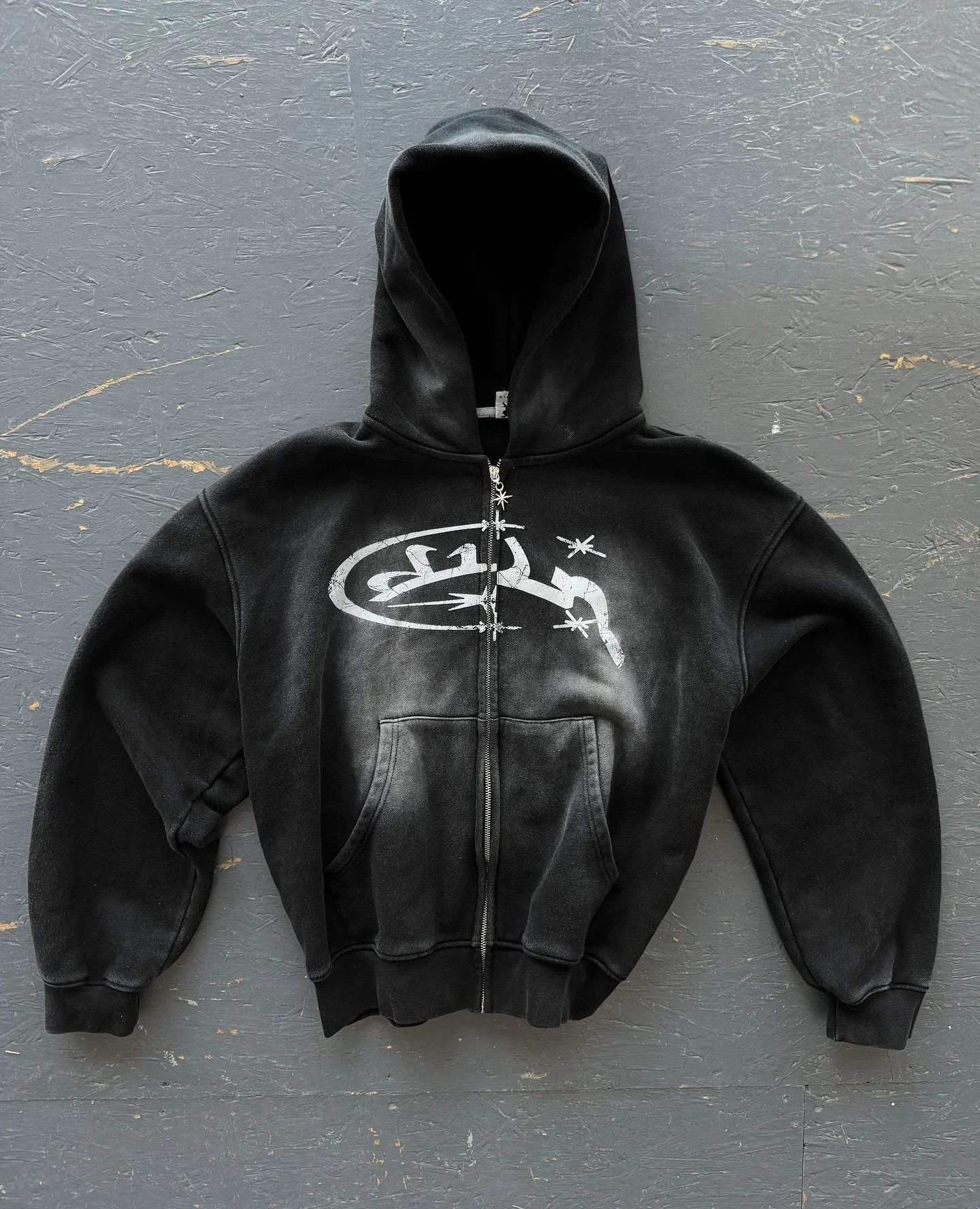 Fashion Vintage Print Zip Up Hoodie Y2k New Harajuku Hip Hop Long Sleeve Coats Loose Hooded Sweatshirt Men and Women Streetwear